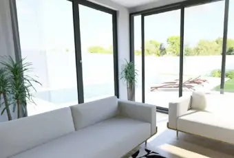 A sant'andrea vendesi villa unifamiliare con piscina in corso di costruzione su lotto di mq. 525. Piano terra: luminosa zona living con ampie vetrate su zona piscina e prato all’inglese (soggiorno-pranzo-cucina-wc-doccia-lavand. ) piano primo: zona notte
