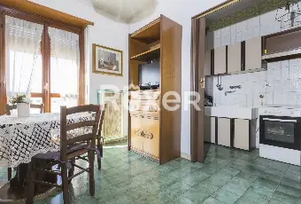 Appartamento composto da ingresso, tinello con cucinino, soggiorno, due camere da letto, bagno, ripostiglio e due ampi balconi. Completano la proprietà una cantina e un box auto al piano interrato. Superficie catastale mq 104. Pavimenti in marmo e ceramica, infissi esterni in legno con vetro singolo, riscaldamento centralizzato con termo valvole.